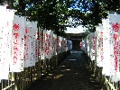 祈願の幟がずらりと並ぶ、裏の小道はちょっと怖いぐらいに静謐。心なしか空気も冷たく感じました。
