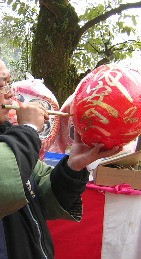 お買い上げの達磨に金の筆で願いごとを書いてくれるところもあり、「家内安全」とか「交通安全」とか、書いてもらっている人もいました。