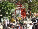 お彼岸の7日間。昔は、見世物小屋の興行などもあり、テキヤの呼び込み口上(タンカ)が、自由に撞かせてくれる境内の鐘の音とあいまってとても賑やかな縁日だったそうです。いまでは縁日と言ってもたこ焼きやお好み焼などの食べ物屋さんがほとんどで、おもちゃなどを売る露店がほんの少し。かつての賑わいを知るヒデさんにいわせるとお店の数もずいぶん減ったとか。