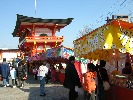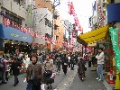 他の縁日との大きな違いといえば、おもちゃや綿飴といったお子様向けの店を見かけなかったことでしょうか。「原宿観光」でしょうかね、カメラをもった若い人たちもけっこういました。お好み焼などを買い求めて、郵便局の前の空き地で食べていたりする人も多かったし(笑)