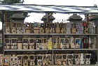 境内にはお守りやミニチュアのお地蔵様などを売る露店が立ち並び、易者や家相見などもいて、けっこういろいろな人が相談に訪れていました。露店はお好み焼や焼きそば、団子などやはり食べ物屋が多いですが、地方の直産物や、おばあちゃんの原宿といわれるくらいでやはり高齢者の姿が多いせいか、健康関係のグッズや民間薬のようなもの、健康食品などの店が目立ちました。