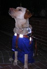 私たちは4人と1匹がかたまって観戦しました。この子は、盲導犬のネレイドちゃん。ベイスターズのユニフォームを着ています(特注よ!)。みんなから「かわいい!」という声をかけていただき、ありがとう。でもね、お仕事中だから、さわったり、なでたりはしないでね、お願いしますm(_ _)m