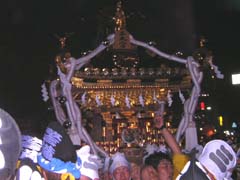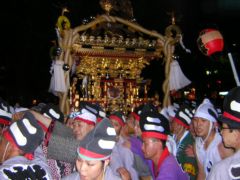 最後の神輿が大鳥居を出て行ったのは、もう8時過ぎ。結局、3時間あまりを押し合いへしあい状態の中に立っていたわけで、こりゃー、疲れるのも無理ないなぁ。でも、その後、ちゃっかり夜店を見て回り、お参りもしてきましたよ。祭スケジュール、アクセス等はよろしければ「縁日ガイド」をご参照ください。