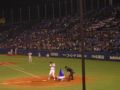 なんとなく暗いし、老朽化もしているのでしょうが、私は神宮球場が大好きでして。ブルペンも目の前にあるし、スタンドが低いのですぐそばで野球をやっているという感じがいいなぁ。なんだか上手に年をとってきた建物だなぁという気がします。ときどき排水溝からドブネズミが顔を出したり、集中豪雨のときはバックネット裏が冠水したりするのはご愛嬌です。