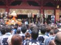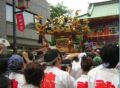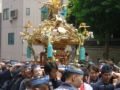 府中と違って、こっちの警察/機動隊は何も言わずにもくもくと警備してるし、境内も開放してお客さんも自由に動けるし(下手すると一緒に担げそうな距離まで近づけるし)、神輿が通るときは「はいよっ、ちょっと神輿に道をあけておくれっ」なんて、半纏のおじさんに声をかけられて、見物のお客さんも「はい、はい」と脇によけるような。人はいっぱいいましたが、けっこうほのぼのと混んでました(笑)