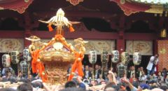 街を練り歩いてから宮入し、お祓いを受け、参拝した神輿は、また再び街へ出て行きます。道路には給食車両がいて、担ぎ手がちょっと休憩してたり、割烹着姿のねえさんたちが炊き出しにでてたり、そんな風景もなかなか風情があります。