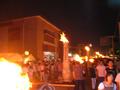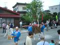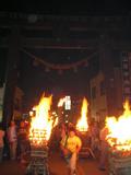 近くによると火の粉は飛んでくるは、熱いは、それはそれで大変なものです(^_^;) 大松明の列の両脇にあっという間にたくさんの屋台、露店が出現しました。見物客はカキ氷などを買い求めて、熱い火と冷たい氷のコントラストを楽しみながらそぞろ歩いているようでした。