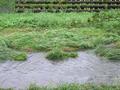 川の改修工事が行われ、ある程度の水位に達すると自動的に緊急の貯水池に流れ込む仕掛けが作られています。普段はハザードの空き地、テニスコートとなっていますが、水位が増すと水が流れ込み、それでも足りないとその奥の野球場、サッカーグラウンドに流れ込むようになっているようです。運動場はしばらく使えなくなるかもしれませんが、おかげさまで下流の住宅街は浸水を免れています。今回はどうもテニスコートぐらいまでは水が上がったように見受けられました。