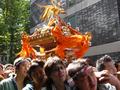 氏子さんは赤坂、六本木の町内ですが、赤坂、六本木なんていうと、ニューヨーク、パリというのと同じような感じで、「土地の氏子さんなんか、いるんですかぁ〜?」という感じでしたが、みなさん、町内ごとにおそろいの法被、鉢巻姿で勇壮。普段は取り澄ました街も、このときばかりは先祖返りしているような(笑)