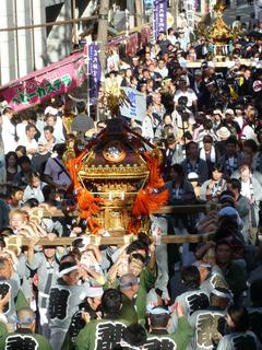 16日に連合渡御される神輿は、区内それぞれの町にあり、全部で48基とか。3カ所に集合し、順次宮入りするそうです。都内には3基しかない八棟神輿も出るとのことで、これも見てみたいものですが。