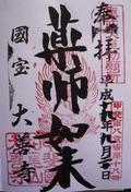 この薬師堂は鎌倉和様建築と東大寺大仏様式が組み合わさっているという国宝の建造物だそうです。建築様式のことはさっぱりわかりませんが、落ち着いた風格のある建物であることは確か。堂内にはご本尊の薬師如来像と日光・月光菩薩が安置されていて、いずれもサクラ材による一木造漆箔像で重要文化財になっています。