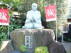 近藤勇の像といえば、たいてい腕組みに正座という同じスタイル。写真が一枚しか残っていないので、これが原型なのでしょうが、芸がない? 顔が不細工なのはしょうがない(^_^;) けど、この像は、写真よりちょっと修整してある感じじゃないですか(笑)