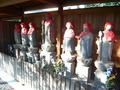 これまで16のお寺を廻ってきましたが、この菱渓山三光寺ではがっくり。山門をくぐると本堂の前にいっぱい座布団が干してあったのです。私たちは、座布団にお参りすることになるんですか? なるんです(-_-;)