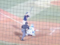 期待に応えて、「代打オレ」、やってくれました。打席では、360度古田コールで、ライトスタンドも「かっとばせ〜、古田!」です。ピッチャー吉見はちょっとお気の毒(笑) ホントにかっ飛ばされちゃったし(^_^;) ネット裏は、最後の写真を撮ろうとする人たちがどっと集まり、席に座っている人から「見えなーい! 座れ〜!」と怒られてました。と、他人事のように言いながら、私も写真を撮りに行きました(^_^;) 座席より前にはでなかったので、怒られなかったけど。新庄のときにそれと知らずに走っていって怒られたので、学習してました〜(笑)