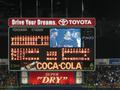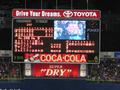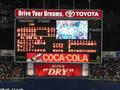 ホーム側はそんなわけで毎年けっこう人が集まりますが、今年は古田選手&監督の最後の試合ということがあって、レフトスタンドも満席。内野席もかなりしっかり入ってました。このカードにしては、トップシーズンより多いくらいかも(^_^;) 7回の応援タイムのときにはバックスクリーンに古田監督が大きく映し出され、スワローズファンの応援ボードもいっぱい映されていました。