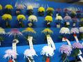 なんと呼ぶのかわかりませんが、留め金のようなもので花を固定してまるく仕上げたものは、花火みたいできれいでした。色合いによってはUFOのような、でっかいサボテンのような。