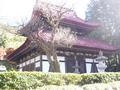 入り口の小さな木橋の下には清流がありました。楓橋と呼ばれるこの反り橋を渡って三門まで、長い参道が続いています。両側に杉の木立が続くいて、荘厳な雰囲気が漂っています。参道の先に現われたのは古めかしい三門。堂々として、威厳がありました。その奥にあるのが本堂かと思ったら、仏殿なのだそうです。