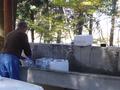 瀧の向かいに水場があるのですが、ここの水はおいしいというので、近隣から水を汲みに来る人が絶えないそうです。この日も乗用車に大量のポリタンクとペットボトルを積んだ人、バイクの座席にポリタンクをくくりつけてきた人、何人かが水汲みに余念がありませんでした。私は「日本の名水」というのはよく知らないのですが、リストアップされているのでしょうか、それとも隠れた名水なのでしょうか?