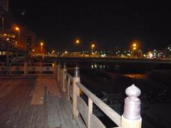 雰囲気のあるお店で、いまの季節は使われていませんが、鴨川を見下ろす「床」があります。床に出ると、鴨川にかかる橋が暗闇に鮮やかに浮かび上がってきれい! 寒さにもめげず、カップルや犬を連れた人が河原を散歩していました。「床」の季節にまた訪れてみたいお店です。