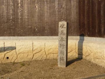 伏見といえば、佐幕派にとっては(笑)やっぱり寺田屋より伏見奉行所跡です。ここへ行くのを楽しみにしていましたが、当然、鳥羽・伏見の戦いで壊滅してしてまって、石碑がぽつんと立っているだけだということは知っていたので、突然、復元されていた……なんてことを期待していたわけではありません。明治以降、陸軍工兵隊の基地となり、戦後は米軍に接収され日本に返還された後は市営桃稜団地になったと入り口に説明板が掲げられてありました。