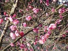 あと数週間で梅林も楽しめるようになりますが、気の短い木もあるようで、もう一部では花をつけていました。松の木はただいま治療中のようで注射器がいっぱい刺さっていました。ちょっと痛々しい感じですが、点滴のような物で元気になれるなら、それも健康管理かも。