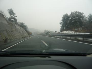 中央道に乗ったときは曇り、笹子トンネルを抜けるとワイパーが必要なほどに雨になりました。そして、「長野県」という標識が出たとたんに雪に変わるって、地図見ながら降ってるのかしら?(笑) 雪はたいしたことはなかったのですが、けっこう濃い目のガスが出ていて、めっちゃ走りにくかったです。南アルプスも八ヶ岳もまったく見えず〜。