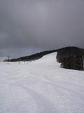 晴れていれば戸隠連峰がくっきり見えるのですが、あいにく上空に雲がかかっていました。そして、30分後、その雲が降りてきたらしく、ゲレンデ近くまでおぼろな霧に包まれ始めましたよ。あらら、視界不良だと子どもたちが危ないな……と思ったら、1時間後にはまた日差しが……。山の天気ってこんなですよね。↑と↓同じ場所から撮ってます。