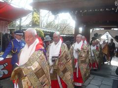 短い距離ですが、境内を練り歩いて元三大師宝堂へ向かい、ここで百味供養が行われます。もともとは旧暦1月3日の元三大師の命日に行われていたものが、新暦にあわせてこの時期になったそうです。