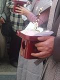 「ひな」は事前に申し込みをした人に渡されますが、当日でもOKの分が少しはあるというので、受付所へ行ってみました。「間に合った!」というべきが、あと20〜30個の紙雛が残っていたので、「やってみるか」とばかり、申し込みました。1個(1体かな? 1対かな?)、800円也。ちょっと高いけど……。
