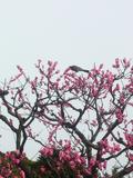 ぐるっと回って、陸地の出口のほうへ向かうと、梅の木に「ヒヨドリ」が来ていました。真剣に蜜をすすっているのでしょうか。傍を人間がぞろぞろと通ってもおかまいなし。ビルと道路ばかりのようなところで、鳥たちにとっては本当にオアシスなのかもしれません。こういうのをビオトープっていうのかな?
