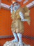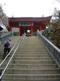 上っていく道の端に、すみれが咲いていたり、蕨が芽をふいていたり、大いに自然も楽しめます。さすが名刹といわれるお寺だけに、山門も立派。境内に入ると、まずは薬王院のシンボルともいえる天狗様が怖い顔をして出迎えてくれます。山門の中にもやっぱり天狗様がいらっしゃいます。