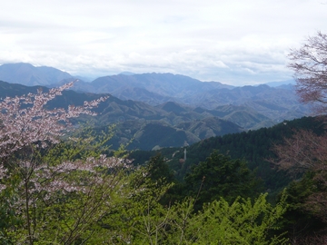 到達した積翠寺は山の中腹。背後も山ですが、ここから見渡す前方の山々が春霞におぼろで、くすんだ緑の中にぼんやりピンクの山桜、まるで王朝の着物の柄を見ているような……。メリハリのない美しさというのもあるのだなという感じでした。