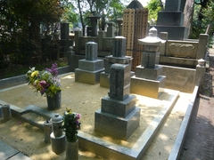 行ったり来たりしながら、、やがて谷中墓地に到着。ここにはさまざまな有名人のお墓があります。といっても、わざわざ探してみるほど興味深い人もなく……。私が記憶していたのは高橋お傳だけだったのですが、我ながらなんで高橋お傳?って感じ。長谷川一夫のお墓などは、新しく建て直したらしく、ピカピカです。初老のご婦人がふたり、「母がファンだったのよね」などと言いながらお参りしてました。初老の方の母上ってことは、昭和初期ぐらいのスターだったのでしょうか。もちろん、私も名前ぐらいは知っています。