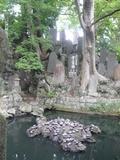 ここは5世紀後半に作られたという前方後円墳です。埴輪などが出土しているそうで、東京都の指定史跡になっています。全長106メートル、前方部幅40メートル・高さ6メートル、後円部径64メートル・高8メートル、くびれ部が幅22メートル。プリンスパークタワーを建てるために裏のほうは削られてしまったとか。タワー完成後にすぐ堤総帥が逮捕されたので、地元の人は「古代人のたたりじゃ〜!」と言ったとか言わないとか(笑)