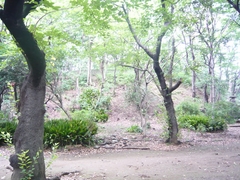 ここは5世紀後半に作られたという前方後円墳です。埴輪などが出土しているそうで、東京都の指定史跡になっています。全長106メートル、前方部幅40メートル・高さ6メートル、後円部径64メートル・高8メートル、くびれ部が幅22メートル。プリンスパークタワーを建てるために裏のほうは削られてしまったとか。タワー完成後にすぐ堤総帥が逮捕されたので、地元の人は「古代人のたたりじゃ〜!」と言ったとか言わないとか(笑)