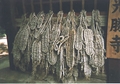 長い石段を登っていくと広目天と多聞天が目を光らせている山門があり、その奥の深い木立ちの中に本堂はあります。この山門にはわらじがたくさん掛けられていて、それを見るとここがかつて旅人の守護をしていたお寺であったことが偲ばれます。山を越えて旅をする人々が、道中の安全を願って、ここのわらじを奉納したのうでしょう。鎌倉時代には、武田一族が頼朝への奉仕で交代通行の際に、この寺で人馬の足を休ませたといいます。参 勤交代のようなものが、鎌倉時代にもあったんですね。