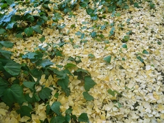 このいちょう並木は1923(大正12)年にできたそうです。もう85歳なんですね。代々木にある宮内省南豊島御料地の苗圃で、樹高6メートルほどに成長していたいちょうの中から選抜されたものが、このいちょう並木に植樹されたのだとか。いまではのっぽのいちょうは30メートルちかくあるそうです。背の高い順に青山方面から絵画館に向かって植えられ、この間は地面にもわずかな勾配があって絵画館寄りの終点は、始点より約1メートル低いそうです。