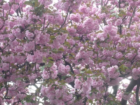 郵便局にハガキを買いに行くついでに、ちょっとその辺をブラブラしてみました。もう半袖のTシャツです。麦藁帽子もかぶってみました。今日は春というにはまぶしすぎるような陽射しでした。桜の花は咲いたと思ったら、あっという間に消え去り、いまは青々とした葉を繁らせています。でも、花はソメイヨシノばかりではありません。八重桜やモクレン、はなみずきなどが青空を彩っていました。あちこちのお庭や生垣のツツジも色とりどりの花をつけています。