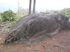 途中には「鬼女紅葉伝説」の登場人物ひとり「おまん」にまつわる伝説のある硯岩があり、雑木林が開けると遠く山々がそそり立っているのが見えます。まだ、頂き近くにはほんの少しの雪を残して。普段は人とすれ違うことも稀な道ですが、さすがゴールデンウィーク、前や後ろにもちらほらと人影が見え、すれ違った方々も多数。すれ違いざまに「こんにちは」と声をかけてくださるのは、山歩き趣味の方々なのでしょうね。めったに山などに足を踏み入れない派は、道は譲り合っても無言です。軽く会釈する派もありですね(笑)