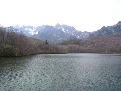 終点の鏡池はクルマやマイクロバスで訪れた人々でにぎわっていました。やや風が強く、湖面が波立っているので「鏡」にはなっておらず、逆さ戸隠連峰が見られず残念でした。季節的には秋の紅葉を映すのがいちばん美しいように思いますが、新緑というのも見てみたかったですね。もう少し後、6月初旬ぐらいがいいのかもしれません。
