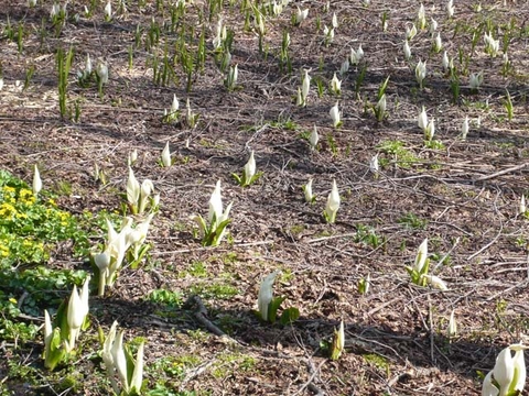 戸隠ではそこかしこに水芭蕉が群生しているのが見られます。有名なのは奥裾花渓谷ですが、わざわざ出かけていくには及ばないという感じです。数や広さは奥裾花渓谷にはかなわないのでしょうが、実はそちらには入口までしか行ったことがありません。GWという最悪の条件でなければ(笑)、鬼無里や奥裾花渓谷まで足を延ばしてもよかったのですが、戸隠でも十分に楽しめました。