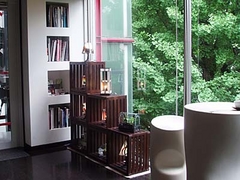 たまたま先日のブログに「鏡をみなきゃならないから美容院は嫌い」と書いたばかり。世の中には「ガマの油」になりたくない人がそんなにたくさんいるのかしら? いえいえ、そうではなく、カーラーを巻いている姿やヘアダイをしてるときの姿は見たくないというお客さまのご要望にお応えして、このような設計をなさったのだとか。白金台の「プロスペクト・ヘアデザイン」という素敵な美容室です。