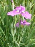 京成線の堀切菖蒲園駅からは「堀木菖蒲園はあっち」という看板が随所に立てられているので迷うことはありません。10分ほど歩くと、菖蒲園の前には露店なども数店あって、多くの見物人が門の中へ吸い込まれていきます。ここには江戸系花菖蒲といわれる菖蒲を中心に200種6000株の花菖蒲が植えられているそうです。いまは「菖蒲まつり」の真っ只中。そう広い公園ではありませんが、いろとりどりの花菖蒲が賑やかに咲きそろっていました。入場無料というのもうれしいですね(^_^;)