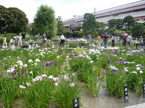この辺りは、江戸時代から菖蒲の栽培が盛んだったようで、「江戸百景」に数えられています。春信や広重の浮世絵にも描かれていますね。 戦前までは、堀切菖蒲園ばかりではなく、他にもいくつかの菖蒲園があったそうです。室町時代に堀切村の地頭が郡山から花菖蒲を取り寄せて栽培を始めたのが始まりという説と、江戸時代に百姓の小高伊左衛門が各地の花菖蒲を集めて庭で栽培したのが始まりという説があるそうです。 1959(昭和34)年に堀切園を東京都が購入、1975(昭和50)年に葛飾区に移管したとか。あら、ちょうど今年は公立になって50周年です。