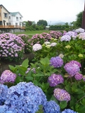 そんなあじさいの帯ですが、流れ沿い以外は広―い田んぼの畦道に並んでいて、なんだかとりとめのない感じで(^_^;) いやいや密集していればいいというものでもないでしょうが、風景としては田植えの終わったばかりの田んぼの勝ち!という感じ(笑) 田植えをしたばかりの田んぼをこんなに間近で見たのははじめてだったので、それはそれで印象的な風景でした。花にシロートの私は、ガクアジサイを見て、「なんで真ん中は咲かないのだ。咲くのをサボっちゃいかん!」と花に文句をつけ、同行の友人に思いっきり笑われました(-_-;)