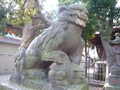 商店街になっている旧東海道を歩いていると、ちょっと奥まったところに小さな神社を発見。子ども連れの狛犬と龍が巻きついたような珍しい石灯籠がありました。解説版はなかったのですが、白い板があったので、準備中かな?