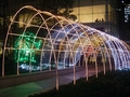 それでは、上のブリッジへ上がってみましょう。ちょっと迫力には欠けますが、全体を見渡すことができます。灯がともった瞬間は、とてもきれいでした。イルミネーションもそうですが、ビルのガラスの壁に映っているのが、幻想的な雰囲気をかもしだして、なかなか素晴らしいです。