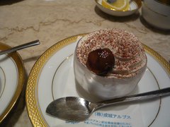 「むか〜し、この辺においしいケーキ屋があったはず……」と、「いやいや、この辺にもあったと思う」とふたりで徘徊しましたが、駅が、街が、変ってしまったこともあり、ふたりとも心覚えの店には到達できず。「まあ、いいか」ということで、「アルプス」という洋菓子屋の喫茶室に入りました。たぶん、成城では老舗なのではないかと。子どもの頃にもあったような気がします(^_^;)