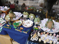 華展を出ると、隣でガラスの造形展のようなものをやっていました。こちらは無料だったので、ついでにのぞいて行くこことに。「ついで」なんて言っちゃって、大変失礼でございましたm(_ )m どっしりしたガラス、繊細なレースのようなガラス、色とりどりのガラス、可愛らしい細工、美しい造形がたくさん並べられていて、ひょっとしたら、華展より楽しめたかも(^^;) あまりの繊細さに「運ぶのが大変だったのでは?」というモモタロウの感想。私の想像では「ここで造ったんじゃない?」(笑)