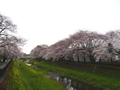 この真っ白い花はなんでしょう? 白い桜ってあるのでしょうか? ソメイヨシノよりはかなり早く、大寒桜よりは遅れて、満開になっていました。河原からはいい匂いが漂ってきます。菜の花もそろそろ満開になりそう。この川では桜と菜の花が同時に開花し、緑の中にピンクと黄色の美しいコントラストを見せています。